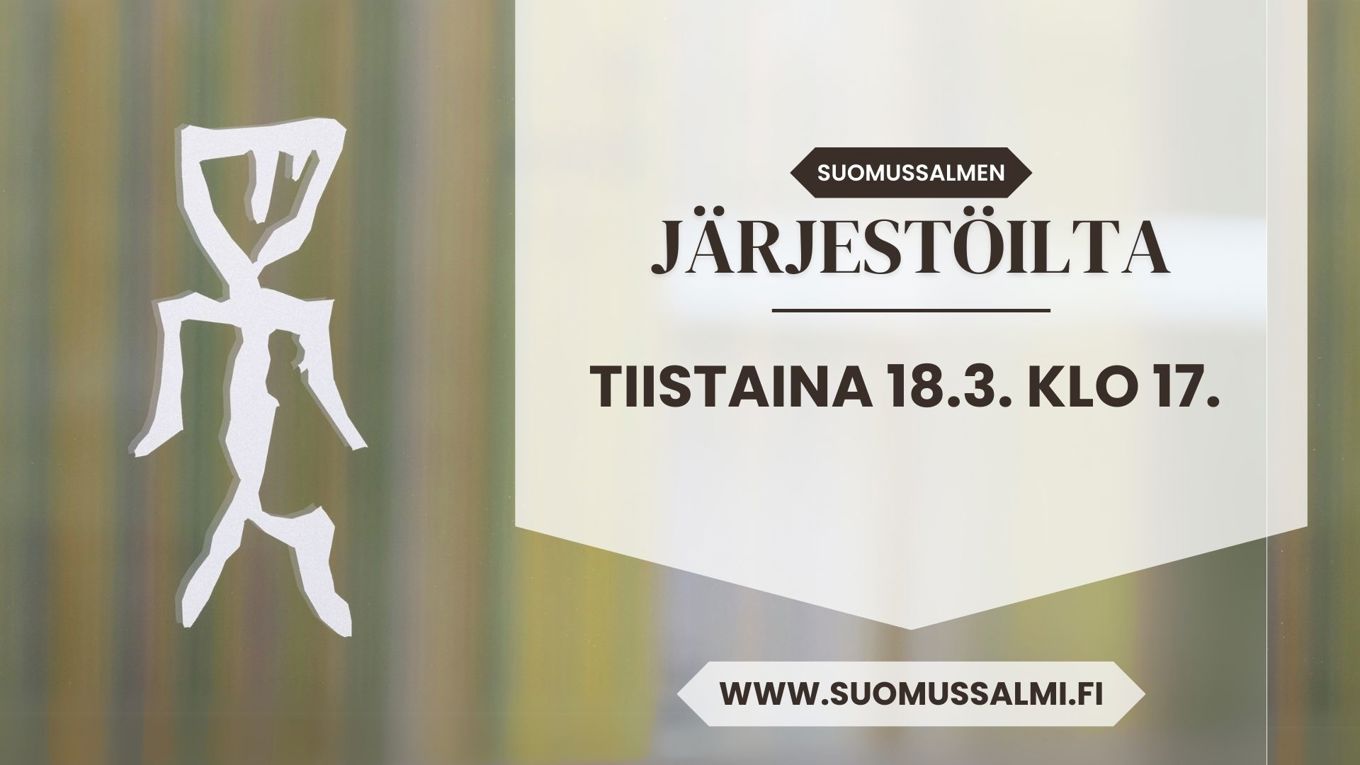 Järjestöillan 18.3.2025 toteutunut ohjelma muuttui hieman suunnitellusta. Lue lisää illan annista uutiesta: https://www.suomussalmi.fi/fi/ajankohtaista/elinvoima/jarjestoillassa-tietoa-rahoitusmahdollisuuksista-ja-tulevista-tapahtumista