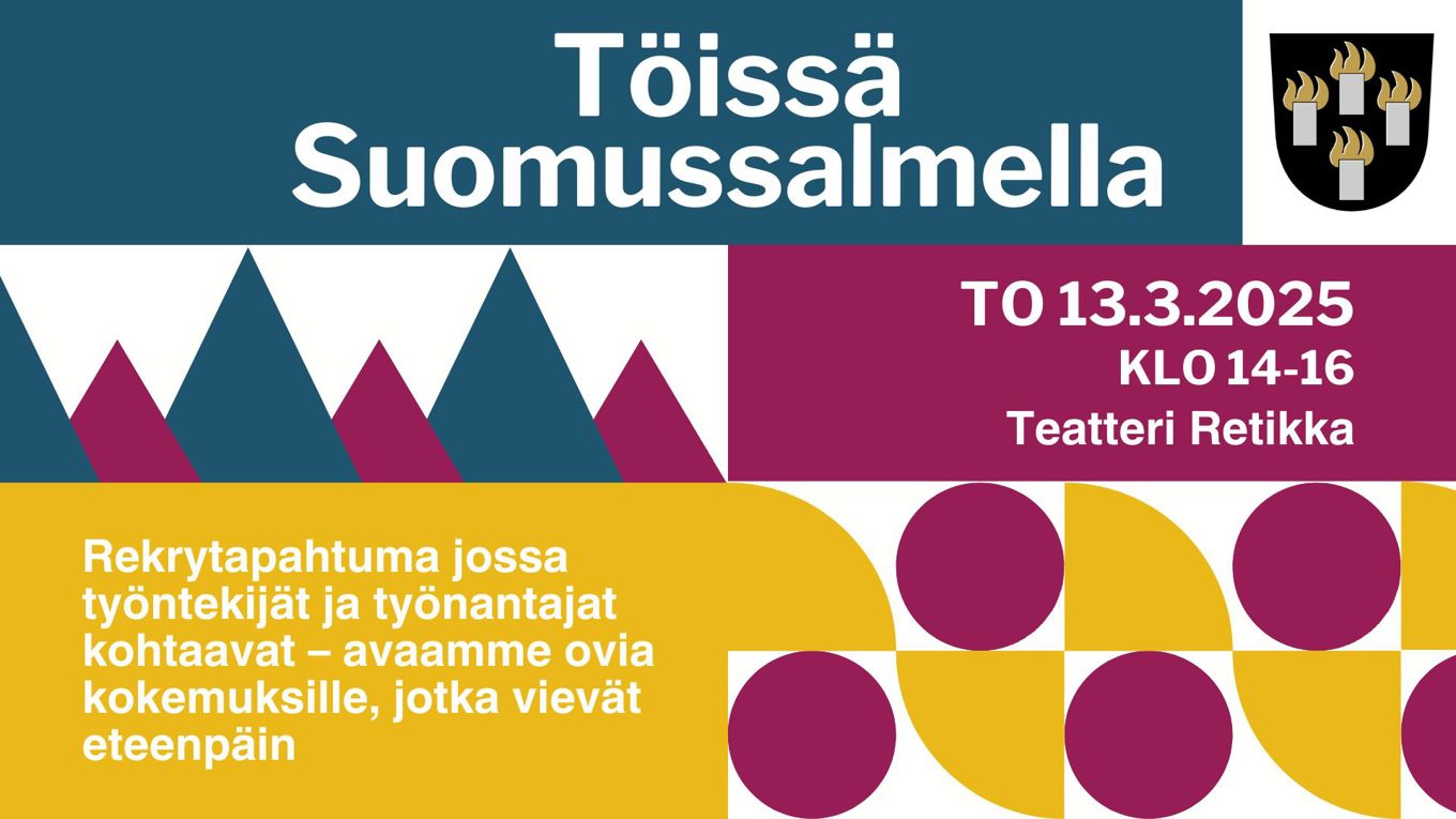 Toista kertaa Suomussalmella järjestettävä Töissä Suomussalmella! -rekrytointitapahtuma kutsuu saman katon alle työnantajat ja työnhakijat. Tavoitteena on, että työnhakija saa työpaikan ja työnantaja löytää työntekijän. Tapahtuma järjestetään Teatteri Retikan aulassa (Jalonkatu 1) torstaina 13.3. klo 14.00–16.00.