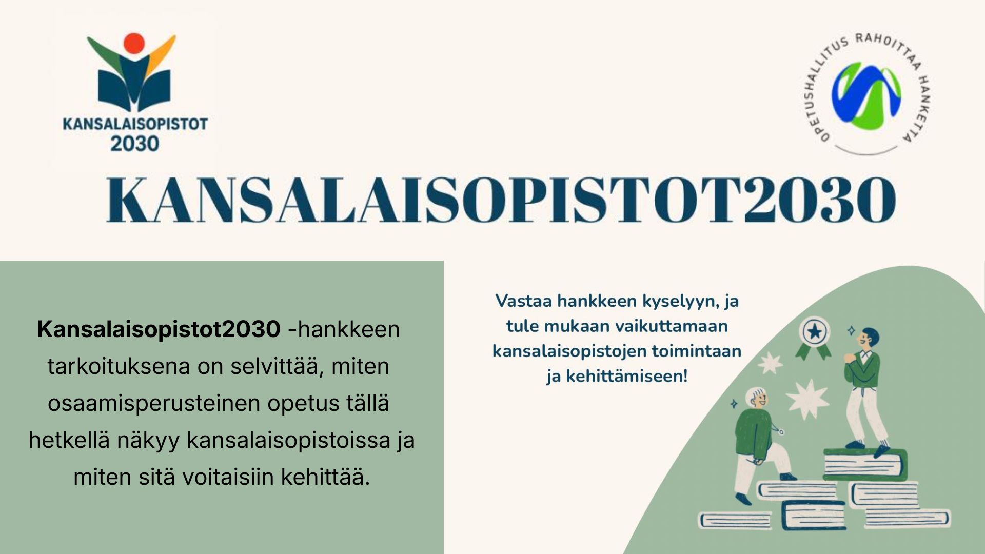 Vastaa Kansalaisopistot2030-hankkeen kyselyyn 23.3.2026 mennessä ja tule mukaan vaikuttamaan kansalaisopistojen toimintaan ja kehittämiseen.