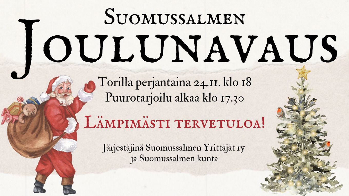 Suomussalmi valmistautuu jälleen lumoavaan joulunajan avaukseen, kun kylä kokoontuu yhteen juhlistamaan joulun odotusta. Tänä vuonna Suomussalmen joulunavaus tapahtuu perjantaina 24. marraskuuta klo 18, ja jo ennen sitä herkutellaan yhteisellä puurohetkellä alkaen klo 17.30.