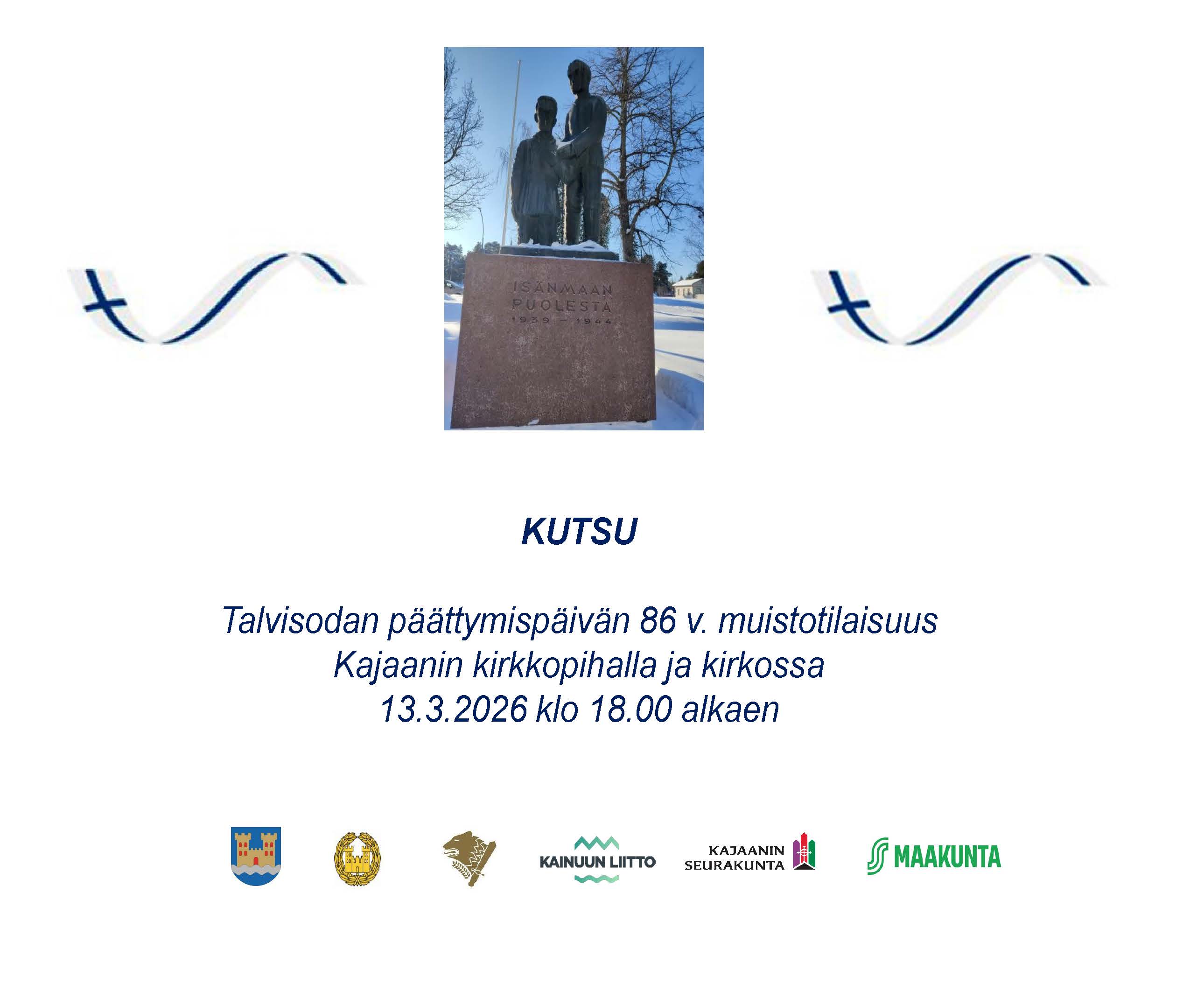 Suomussalmen ja Hyrynsalmen kunnat järjestävät maksuttoman yhteiskuljetuksen talvisodan päättymisen muistojuhlaan perjantaina 13.3.2026.