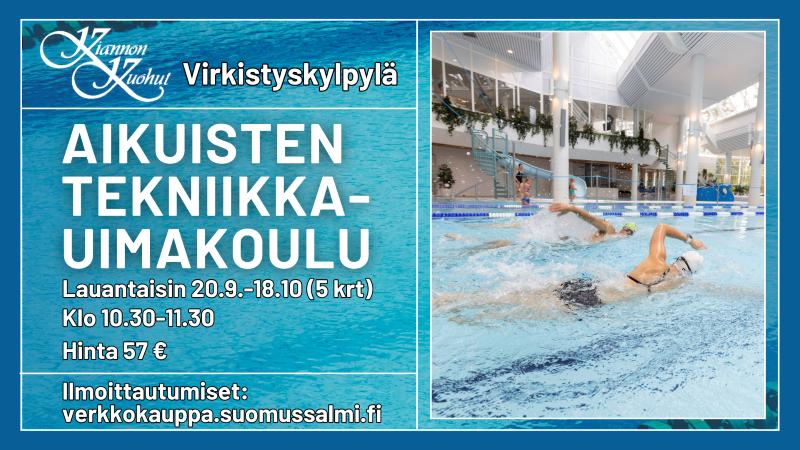 Aikuisten tekniikkauimakoulu (5 krt) lauantaisin 20.9.2025-18.10.2025 klo 10.30-11.30.