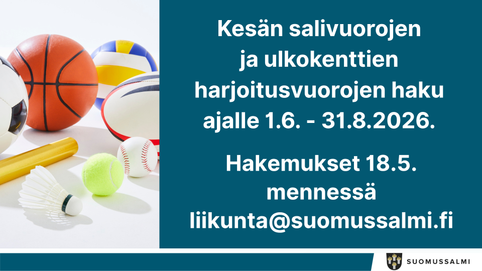 Kesän salivuorojen ja ulkokenttien harjoitusvuorojen haku ajalle 1.6.-31.8.2026