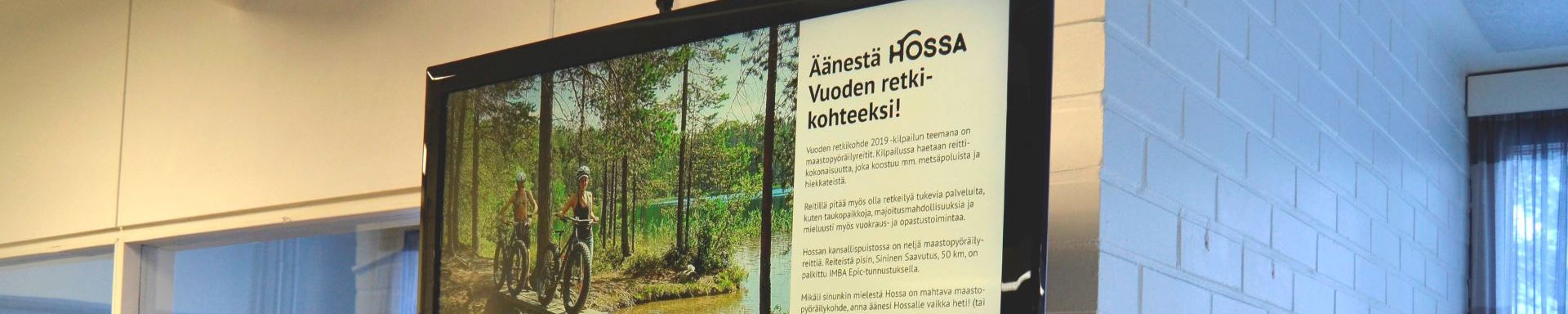 Suomussalmen kunnalla on yksi sähköinen ulkomainostaulu Viitostien varressa ja useita infotelevisionäyttöjä ympäri kuntaa.