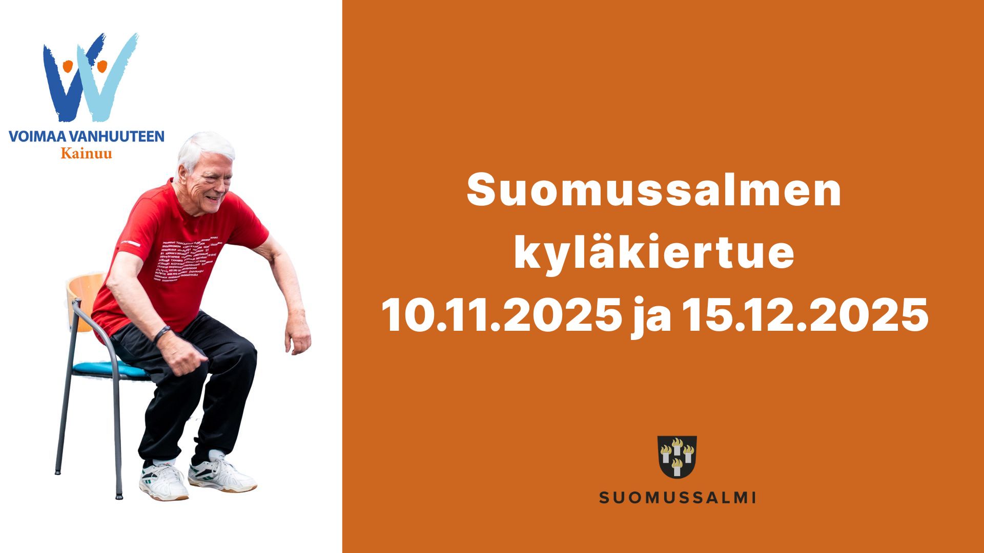 Lisätietoa kiertueestaSuomussalmen kunta on yhdessä muiden Kainuun kuntien kanssa mukana Ikäinstituutin koordinoimassa Voimaa vanhuuteen -ohjelmassa 2025–2027.