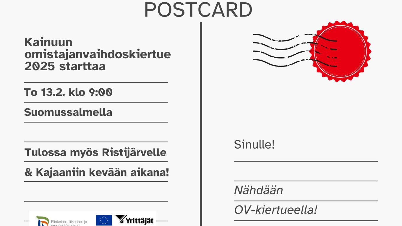 Tilaisuuden järjestelyissä mukana ovat Suomussalmen kunta, Yrittäjyyden ja omistajanvaihdosten edistäminen -hanke, Kainuun ELY-keskus ja Kainuun-Koillismaan työllisyysalue.