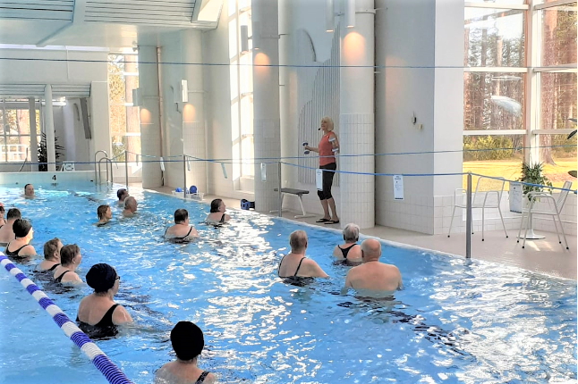 Vesivoimisteluryhmiin voi osallistua kylpylän sisäänpääsymaksulla.